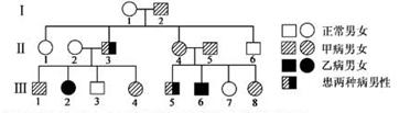 某家系中有甲、乙兩種單基因遺傳。ㄈ缦聢D),其中一種是伴性遺傳病。相關(guān)分析錯(cuò)誤的是