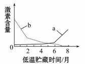 某植物種子成熟后需經(jīng)低溫貯藏才能萌發(fā),為探究其原因,檢測(cè)了該種子中的兩種植物激素在低溫貯藏過程中的含量變化,結(jié)果如圖。根據(jù)激素的作用特點(diǎn),推測(cè)圖中a、b依次為( )