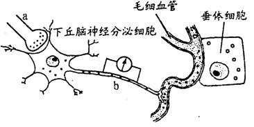 (2)當沖動傳到突觸前膜時,突觸前膜將以 方式釋放遞質(zhì)。隨后,突觸后膜上發(fā)生的信號變化是 。沖動經(jīng)過b處后,電流表會發(fā) 偏轉(zhuǎn)。