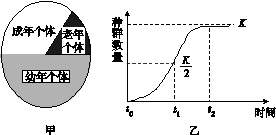 A.甲圖的年齡組成是增長型,在t2時期很可能屬于這種年齡組成