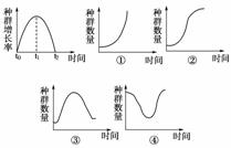 研究所對一條河流生態(tài)系統(tǒng)進(jìn)行了幾年的跟蹤調(diào)查,發(fā)現(xiàn)某種魚遷入此生態(tài)系統(tǒng)后的種群數(shù)量增長率隨時間的變化呈現(xiàn)如下圖所示曲線,則在t1時該種群的年齡組成類型、能反映該種群數(shù)量變化的曲線分別是( )