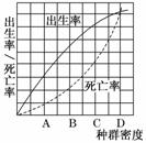 (2)科研人員對(duì)海洋某種食用生物進(jìn)行研究,得出了與種群密度相關(guān)的出生率和死亡率的變化,如圖所示。分析圖示回答問(wèn)題。
