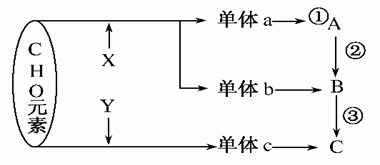 在生物體內(nèi),某些重要化合物的元素組成和功能關(guān)系如下圖所示。其中X、Y代表元素,A、B、C是生物大分子。據(jù)圖分析不正確的是