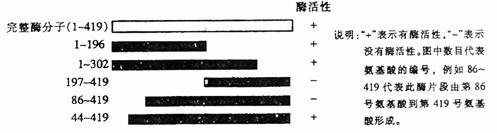 某種酶是由419個(gè)氨基酸形成的蛋白質(zhì)。科學(xué)家利用生物技術(shù)將其切成5種不同長(zhǎng)度的肽鏈片段,并分別測(cè)定其活性。結(jié)果如圖所示,請(qǐng)分析該酶具有活性的部分最可能是下列哪一部分?