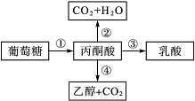 D.乳酸菌細(xì)胞內(nèi),過(guò)程①產(chǎn)生H,過(guò)程③消耗H