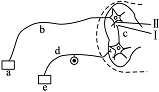 下圖是反射弧的模式圖(a、b、c、d、e表示反射弧的組成部分,Ⅰ、Ⅱ表示突觸的組成部分),有關(guān)說法正確的是( )