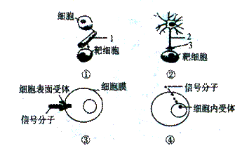 如圖①、②表示人體內細胞間信號傳導常見的兩種方式;③、④表示不同的信號分子對靶細胞作用的方式,下列有關敘述正確的是