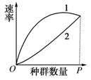 ①曲線1代表死亡率,P代表該種群的最大數(shù)量 ②曲線2代表死亡率,P代表該種群的最大數(shù)量、矍1代表出生率,P代表環(huán)境允許的最大數(shù)量、芮2代表出生率,P代表環(huán)境允許的最大數(shù)量
