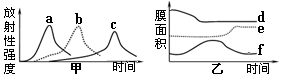 實驗中用35S標記一定量的氨基酸,來培養(yǎng)某哺乳動物的乳腺細胞,測得與合成和分泌乳蛋白相關(guān)的一些細胞器上放射性強度的變化曲線如圖甲所示,以及在此過程中有關(guān)的細胞結(jié)構(gòu)膜面積的變化曲線如圖乙所示。圖中曲線所指代的細胞結(jié)構(gòu)相同的是