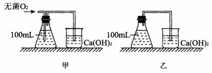 某校生物興趣小組在學(xué)習(xí)了課本實(shí)驗(yàn)“探究酵母菌細(xì)胞的呼吸方式”后,想進(jìn)一步探究酵母菌細(xì)胞在有氧和無氧的條件下產(chǎn)生等量CO2時(shí),哪種條件下消耗葡萄糖較少的問題。他們進(jìn)行了如下實(shí)驗(yàn):將無菌葡萄糖溶液與少許酵母菌混勻后密封(瓶中無氧氣),按圖裝置實(shí)驗(yàn)。當(dāng)測定甲、乙裝置中CaCO3沉淀相等時(shí),撤去裝置,將甲、乙兩錐形瓶溶液分別用濾菌膜過濾,除去酵母菌,得到濾液1和濾液2。請分析回答: