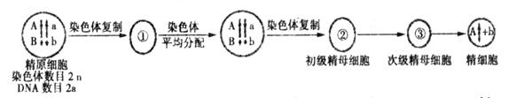 下圖為精原細胞增殖以及形成精子過程的示意圖。圖中標(biāo)明了部分染色體與染色體上的基因,設(shè)①③細胞都處于染色體的著絲點向兩極移動的時期。下列關(guān)于圖解敘述正確的是