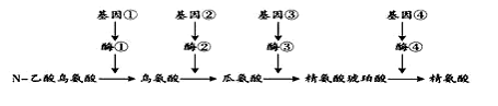 下圖為脈胞霉體內(nèi)精氨酸的合成途徑示意圖從圖中可得出( )