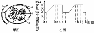B.在細(xì)胞分裂中,既可消失又可重建的結(jié)構(gòu)是甲圖中的4、5,其消失時(shí)間是乙圖的de區(qū)間