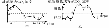 B.到達(dá)圖乙中的d點時,玻璃罩內(nèi)的CO2濃度最高