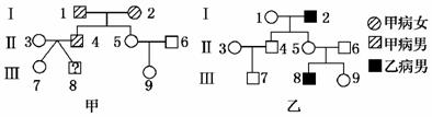 (4)若圖甲中的Ⅲ-8為甲病患者,其與圖乙中的Ⅲ-9結(jié)婚,則他們生下兩病兼患的男孩的概率是________。