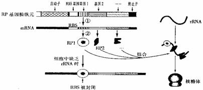 操縱元是原核細(xì)胞基因表達(dá)調(diào)控的一種組織形式,它由啟動子、結(jié)構(gòu)基因(編碼蛋白基因)、終止子等部分組成。下圖表示大腸桿菌細(xì)胞中核糖體蛋白(RP)合成及調(diào)控過程,圖中①②表示相關(guān)生理過程,mRNA上的RBS是核糖體結(jié)合位點(diǎn)。請回答下列問題: