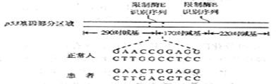 (2)上圖表示從正常人和患者體內(nèi)獲取的P53基因的部分區(qū)域。與正常人相比,患者在該區(qū)域的堿基會發(fā)生改變,在上圖中用方框圈出發(fā)生改編的堿基對。