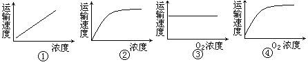 某科學(xué)家在研究細(xì)胞膜運(yùn)輸物質(zhì)時(shí)發(fā)現(xiàn)有下列四種關(guān)系,分別用四種曲線表示