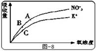 下圖是胡蘿卜在不同的含氧情況下從硝酸鉀溶液中吸收K+和NO3-的曲線:影響A、B兩點(diǎn)和B、C兩點(diǎn)吸收量不同的因素分別是