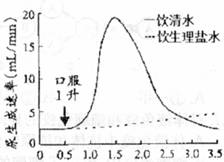 右圖中曲線表示某健康成年人分別飲1升清水及飲1升生理鹽水后的尿生成速率。下列敘述中錯(cuò)誤的是