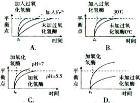 右圖中的曲線是用過氧化氫作實(shí)驗(yàn)材料,根據(jù)有關(guān)實(shí)驗(yàn)結(jié)果繪制的。其中能說明酶具有高效性的是 ()![]()