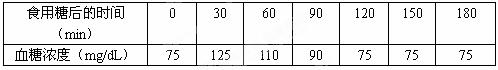 一位科學(xué)家用高濃度的糖溶液飼喂一只動物,在接下來的3小時內(nèi),每隔半小時檢查該動物血液中血糖的濃度。下表是這項實驗的結(jié)果,下列敘述不正確的是( )