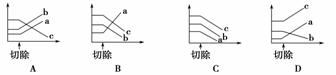 給正常小狗實施垂體切除手術(shù)后,短期內(nèi)小狗血液中的三種激素——促甲狀腺激素釋放激素(a)、促甲狀腺激素(b)、甲狀腺激素(c)的含量變化正確的是(橫軸為時間,縱軸為激素含量)( )