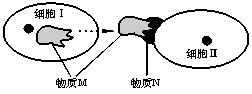 下圖表示兩細(xì)胞間發(fā)生某種信息傳遞的過(guò)程。細(xì)胞I、II以及物質(zhì)M、N的名稱與圖示含義相符的是: