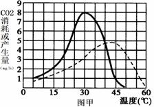 (3)當(dāng)環(huán)境溫度為40℃時(shí),該植物的有機(jī)物凈積累量為 mg/h。理論上預(yù)計(jì),在溫度為 條件下,植物生長(zhǎng)狀況達(dá)到最佳,已知乙圖是在此溫度條件下繪制而成的曲線(xiàn),理論上分析,如果溫度改變?yōu)?5℃,圖中b點(diǎn)將向 移。