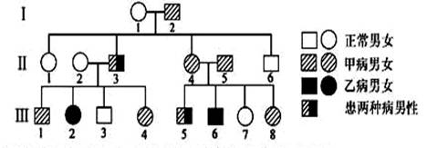 D.若Ⅲ—4與Ⅲ—5結(jié)婚,生育一患兩種病孩子的概率是5/12