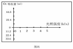 (4)在條件不變的情況下,若以O(shè)2吸收量為觀測指標(biāo),在圖丙中畫出該植物在密閉容器內(nèi)15℃條件下1小時O2的變化曲線圖。(2分)