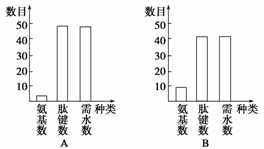 某肽鏈由51個(gè)氨基酸組成,如果用肽酶把其分解成1個(gè)二肽、2個(gè)五肽、3個(gè)六肽、3個(gè)七肽,則這些短肽的氨基總數(shù)的最小值、肽鍵總數(shù)、分解成這些小分子肽所需要的水分子總數(shù)依次是( )