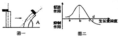 圖一是將含有生長素的瓊脂塊放在切去尖端的胚芽鞘的一側(cè),胚芽鞘彎曲的情況(彎曲角度用A表示);圖二是生長素對胚芽鞘生長的促進作用示意圖,由此可以判斷下列說法錯誤的是( )