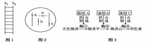 圖1表示b基因正常轉(zhuǎn)錄過程中的局部分子狀態(tài)圖,圖2表示該生物正常個(gè)體的體細(xì)胞基因和染色體的關(guān)系。某生物的黑色素產(chǎn)生需要如圖3所示的3類基因參與控制,三類基因的控制均表現(xiàn)為完全顯性,下列說法正確的是( )