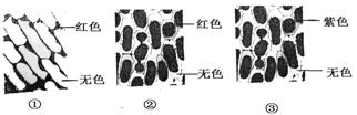 (3)實(shí)驗(yàn)④用了洋蔥鱗片葉內(nèi)表皮細(xì)胞,滴加為質(zhì)量濃度為0.075g/mL的胭脂紅溶液(胭脂紅是一種水溶性的大分子食用色素,呈紅色)。觀察到了質(zhì)壁分離現(xiàn)象,其實(shí)驗(yàn)結(jié)果應(yīng)為下圖中的________(填序號(hào)),判斷的理由是 ????________________ 。