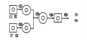 “白菜—甘藍”是用細胞工程的方法培育出來的蔬菜新品種,它具有生長期短和耐儲藏等優(yōu)點。下圖是“白菜—甘藍”的培育過程示意圖,他們的基因型分別為aaBB、ccDD,請回答下列問題:![]()