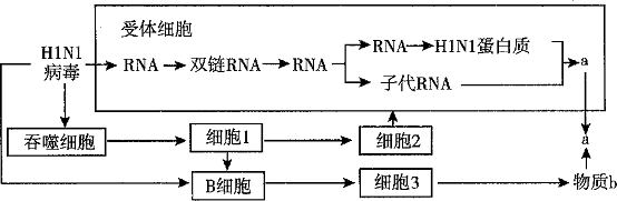 下圖表示甲型H1N1 流感病毒在人體細胞中的一些變化以及相關(guān)反應(yīng)。有關(guān)敘述不正確的是