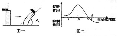 圖一是將含有生長素的瓊脂塊放在切去尖端的胚芽鞘的一側(cè),胚芽鞘彎曲的情況(彎曲角度用A表示);圖二是生長素對胚芽鞘生長的促進(jìn)作用示意圖,由此我們可以判斷下列說法錯誤的是( )