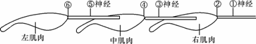 已知肌肉受到刺激會收縮,肌肉受刺激前后肌細(xì)胞膜內(nèi)外的電位變化和神經(jīng)纖維的電位變化一樣。取三個新鮮的神經(jīng)—肌肉標(biāo)本,按下圖連接,圖中②、④、⑥指的是神經(jīng)纖維與肌細(xì)胞之間的接頭,此接頭與突觸結(jié)構(gòu)類似。刺激③可引起圖中右肌肉收縮,中肌肉和左肌肉也隨后相繼收縮,F(xiàn)直接刺激⑤,則會引起收縮的肌肉是 ( )