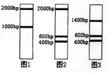 現(xiàn)有一長度為3000堿基對(bp)的線性DNA分子,用限制性核酸內(nèi)切酶酶切后,進(jìn)行凝膠電泳,使降解產(chǎn)物分開。用酶H單獨(dú)酶切,結(jié)果如圖l。用酶B單獨(dú)酶切,結(jié)果如圖2。用酶H和酶B同時酶切,結(jié)果如圖3。下列相關(guān)敘述正確的是( )