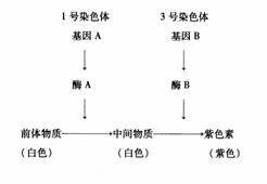 香豌豆的紫花對白花是一對相對性狀,由兩對等位基因(A和a,B和b)共同控制,其顯性基因決定花色的過程如右圖所示:![]()