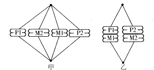 A.甲細胞含有同源染色體,通過該方式分裂得到的子細胞都含有P1 M1 P2 M2