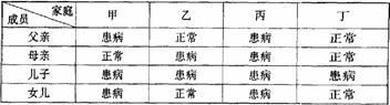 下表為某學(xué)校的研究性學(xué)習(xí)小組調(diào)查某種遺傳病在四個(gè)家庭中發(fā)病的情況。據(jù)表推斷符合遺傳規(guī)律的是( )
