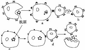 右圖表示免疫反應的某些過程,下列對a、b、c、d四種細胞的判斷,不正確的是![]()