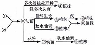 將①、②兩個植株雜交,得到③,將③再作進(jìn)一步處理,如下圖所示。下列分析錯誤的是 ( )