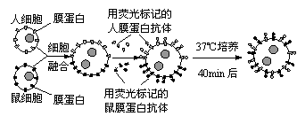 (2)用熒光抗體標(biāo)記的人—鼠細(xì)胞融合的實(shí)驗(yàn)過(guò)程及結(jié)果如下圖所示。此實(shí)驗(yàn)結(jié)果直接證明了細(xì)胞膜中的 ,由此較好地解釋細(xì)胞膜結(jié)構(gòu)的 性。