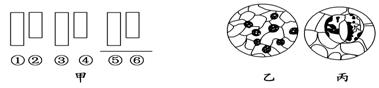 如圖所示:甲圖中①②表示目鏡,③④表示物鏡,⑤⑥表示物鏡與載玻片之間的距離,乙和丙分別表示不同物鏡下觀察到的圖像。下面描述正確的是 ( )