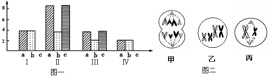 (1) 圖一中a、b、c表示染色單體的是_____________ ,Ⅰ至Ⅳ中存在同源染色體的是_____________ 。