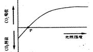下圖表示某種植物光照強(qiáng)度與光合作用強(qiáng)度的關(guān)系。P點(diǎn)的生物學(xué)含義是 ( )![]()
