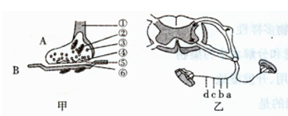 | A.興奮傳遞過程中,甲圖的A中發(fā)生電信號→化學(xué)信號→電信號的轉(zhuǎn)變 |